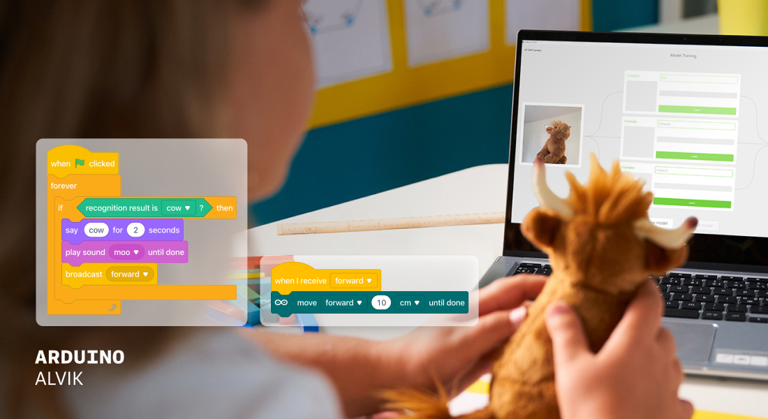 Students train their own AI models using images or gestures and use them to control how Alvik behaves – no experience required! It’s a playful, hands-on introduction to machine learning that’s perfect for young creators.